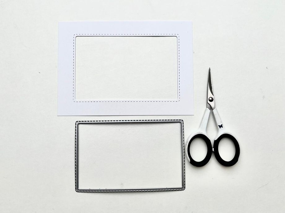 3. Pole uprostřed odstřihneme - vznikne nám rámeček. Pokud vlastníte vyřezávací strojek, můžete využít některou z vyřezávacích šablon s přibližně velikými obdélníky.