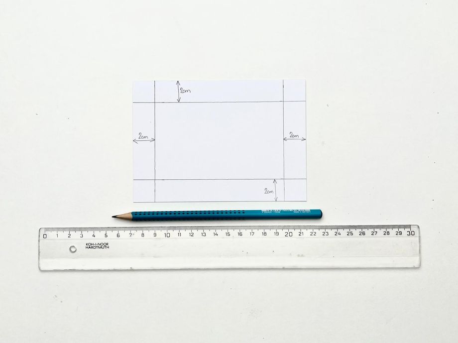 2. Narýsujeme na každé straně pruh 1,8 - 2 cm od hrany obdélníku.