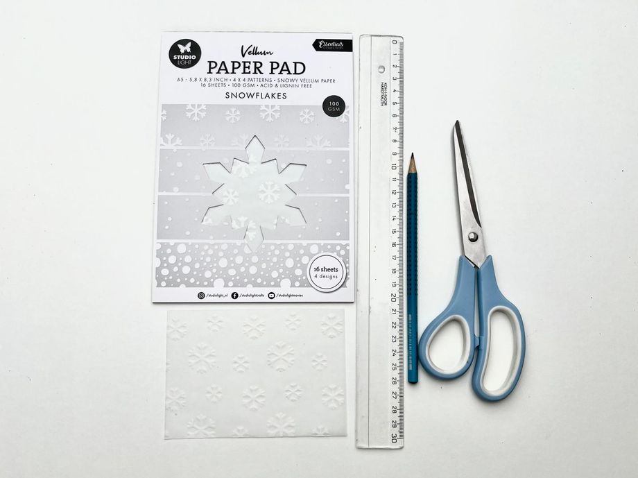 4. vellum papíru vystřihneme obdélník velký cca 13 x 9 cm.