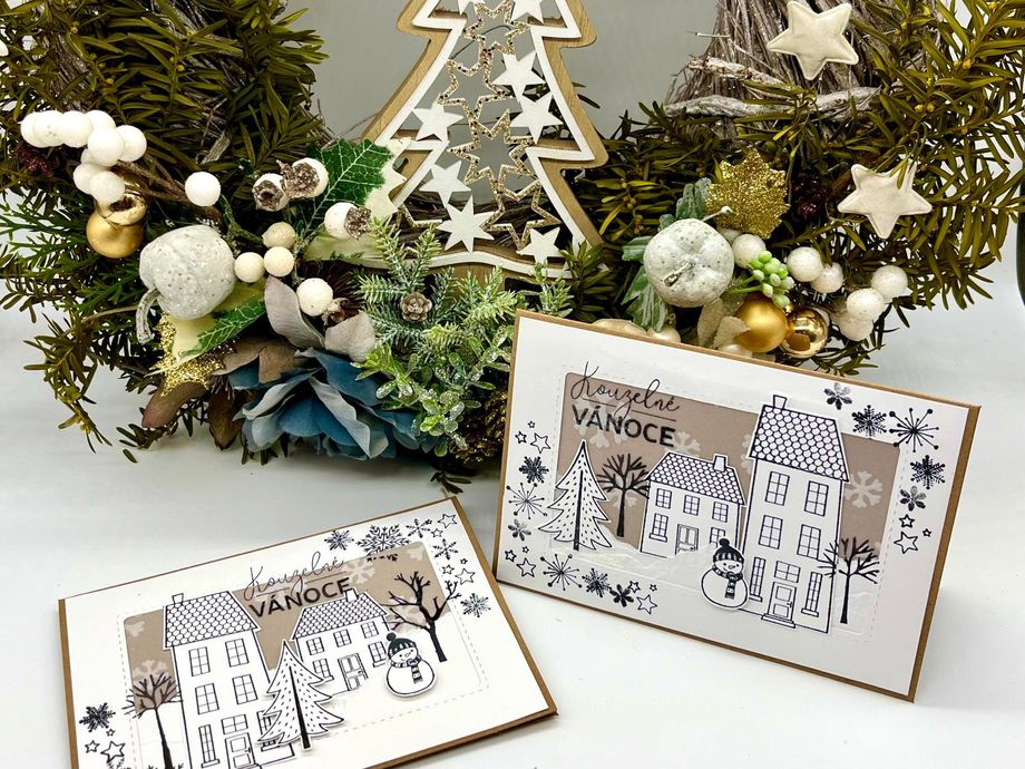 13. A jako poslední narazítkujeme několik sněhových vloček na kraje přáníčka.