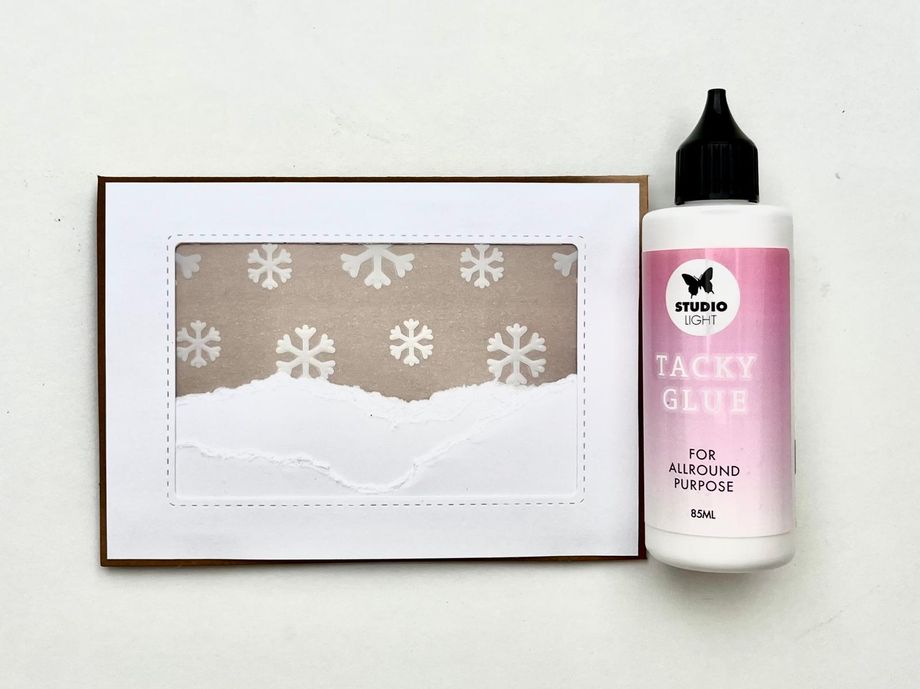 7. Celý tento rámeček nalepíme na kraftový základ přáníčka.