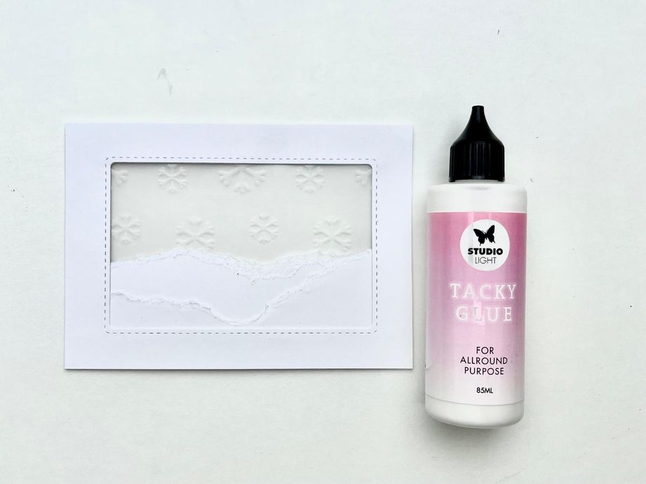 6. Nalepíme je zespodu pod bílý rámeček a pod kopce ještě vellum papír.