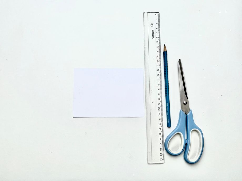 1. bílého papíru ustřihneme obdélník o velikosti 14,5 x 10 cm.