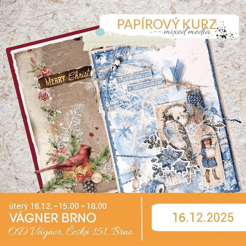 Ponořte se s námi do fascinujícího světa mixed media a art journalingu! Tento kurz vás provede kreativním procesem, při kterém budete vytvářet jedinečné umělecké stránky. Ukážeme vám, jak vrstvit bohaté kompozice se zimními a vánočními motivy. V průběhu kurzu budeme vše ztvárňovat pomocí rozmanitých technika materiálů. Naučíte se, jak pracovat s různými médii, jako jsou různé barvy, pasty, inkousty, razítka, kousky papírů a další dekorativní prvky. Tento kurz je pro všechny (i pro začátečníky), kdo chtějí objevit nové techniky a vytvořit si vlastní umělecký příběh. Těšíme se na společné tvoření!