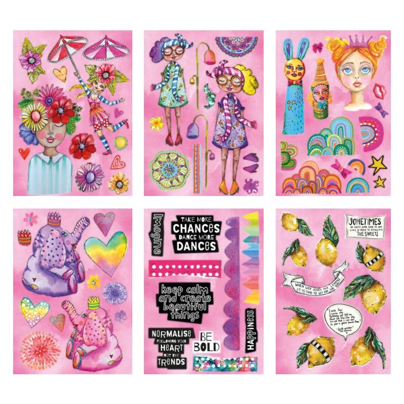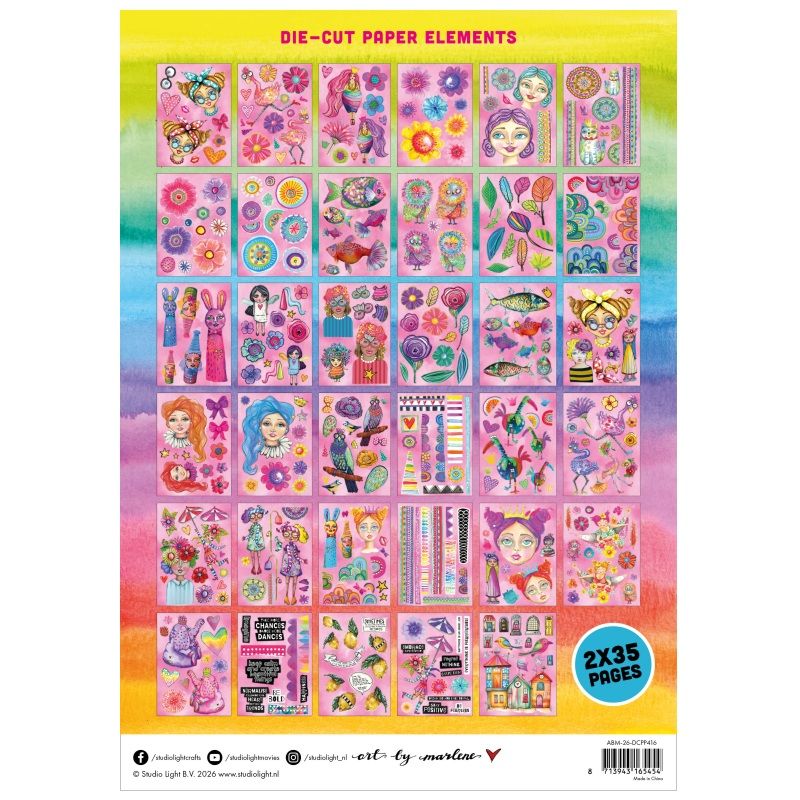 Pestrobarevné vylupovací obrázky v luxusním, extra velkém bloku pro všechny fanoušky naší oblíbené výtvarnice Art by Marlene se hodí na scrapbooking, cardmaking a další vyrábění. Jednotlivé motivy jsou předvyseknuté, obrázky stačí ze stránky vyloupnout k dalšímu tvoření – nemusí se vystřihovat.