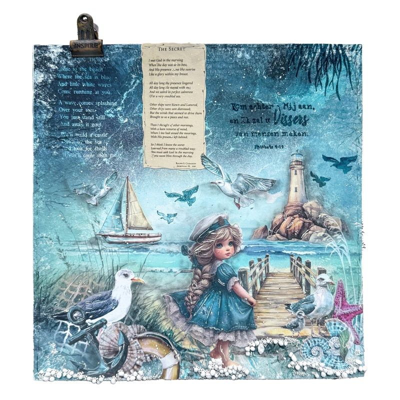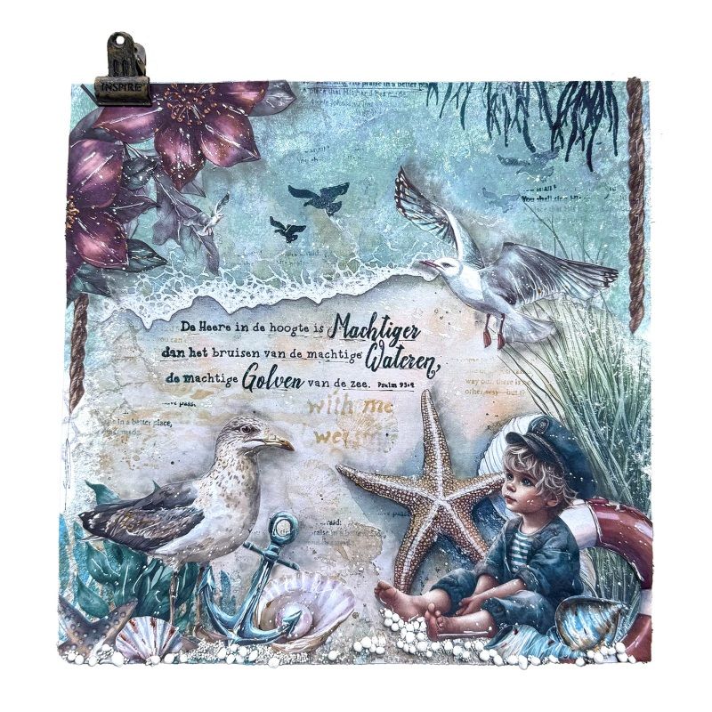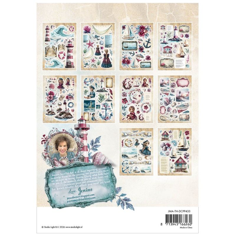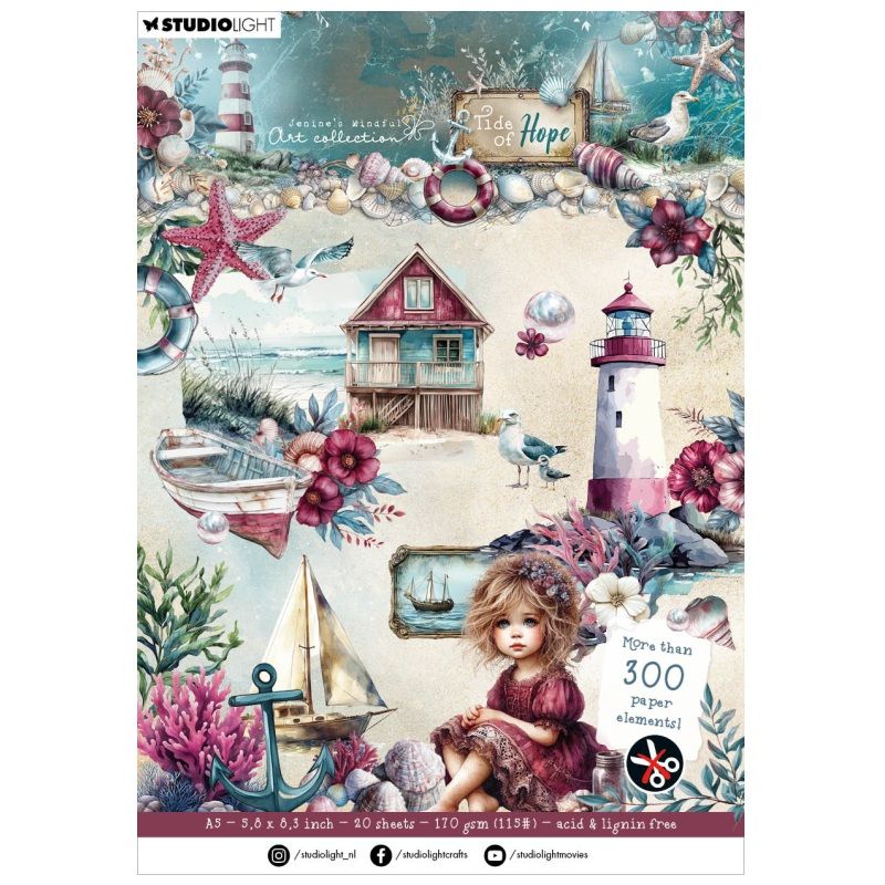 Vylupovací obrázky v bloku s motivy mořského pobřeží z kolekce Tide of Hope („příliv naděje“) se hodí na scrapbooking, cardmaking a další vyrábění. Jednotlivé motivy jsou předvyseknuté, obrázky stačí ze stránky vyloupnout k dalšímu tvoření, nemusí se vystřihovat. Nalepit je na svůj projekt můžete pomocí lepidla , lepicí pásky anebo lepicích 3D polštářků.