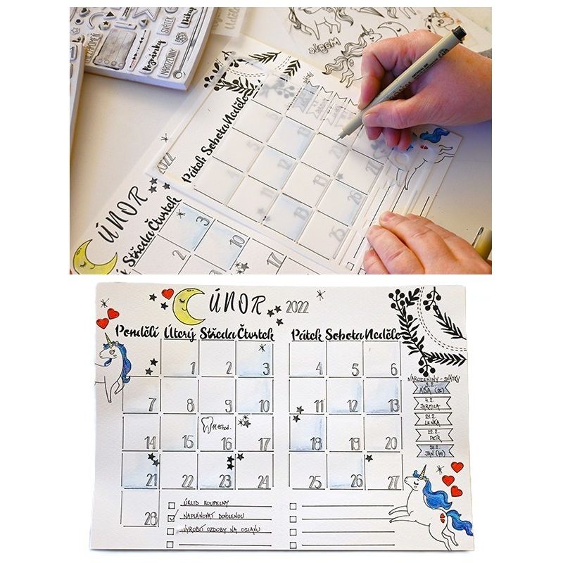 Plastová rámečková šablona k výrobě vlastního diáře nebo Bullet Journalu. Pro snadné vytvoření rámečků, okének, kalendária a nápaditých detailů. Rozměr šablony je 13 x 19 cm. Celý popis