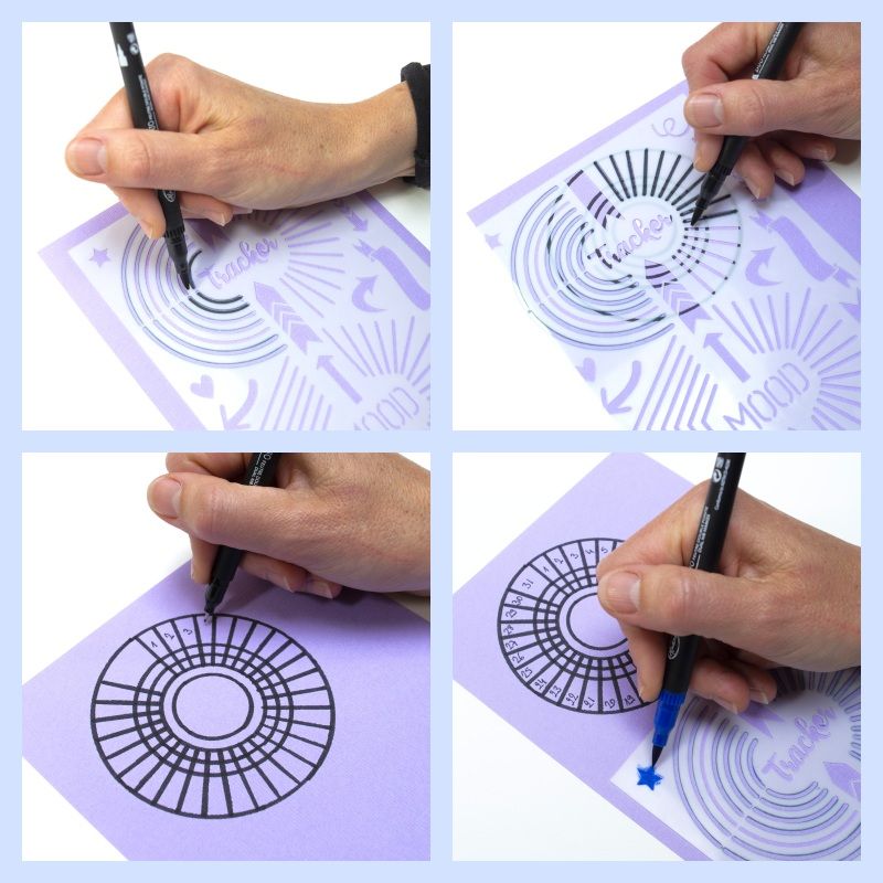 Šablona na vytvoření sledovacích diagramů ve vlastním Bullet Journalu. Mapovat můžete svoje návyky, nálady, předsevzetí, sportovní nebo kulturní aktivity, pitný režim, počasí atd. Plánujte, vymezujte si cíle a úkoly a sledujte úspěchy při jejich plnění.