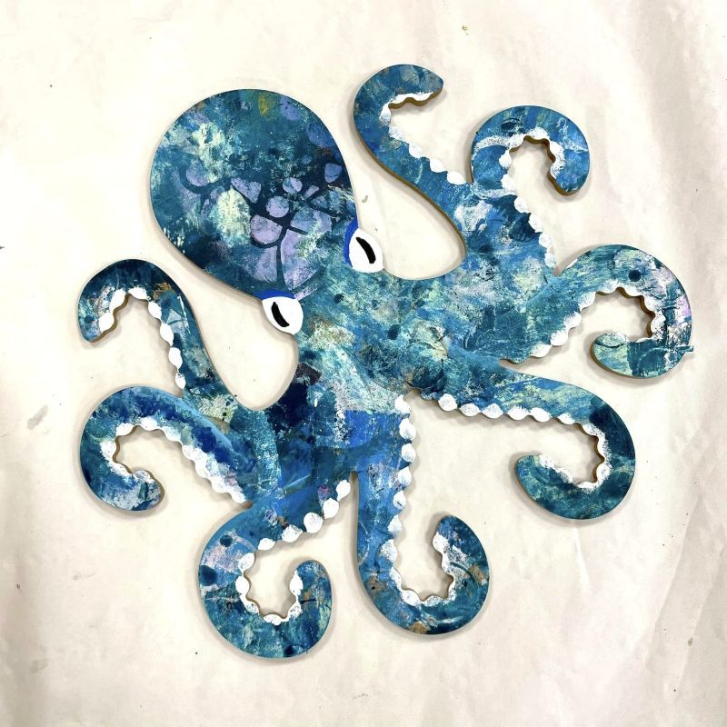 Obří chobotnice z francouzského dřeva je super podklad pro vlastní tvoření. Hotovou dekoraci můžete umístit třeba na stěnu nebo na dveře, klidně ji můžete vystavit i venku.