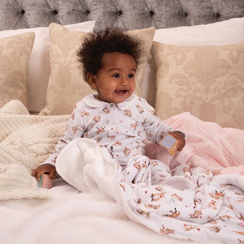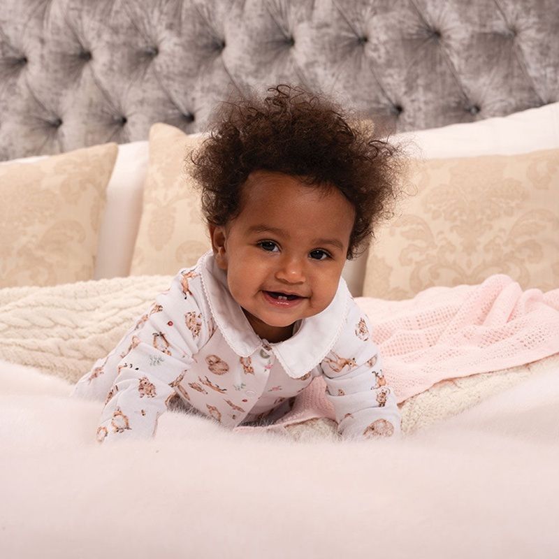 Úžasně měkoučké dupačky budou skvělým dárkem pro novopečenou maminku, který si ráda schová na památku. Luxusní výrobek anglické značky Wrendale Designs zdobí akvarelové ilustrace mláďat lesních zvířátek, jako jsou liščata, koloušci a králíčci, detaily jsou v růžové barvě. Dupačky mají dlouhý rukáv s manžetami proti škrábání, zakulacený límeček ve stylu Peter Pan a proužky na chodidlech.