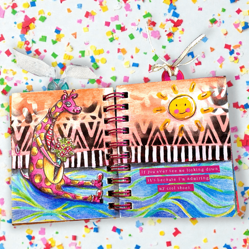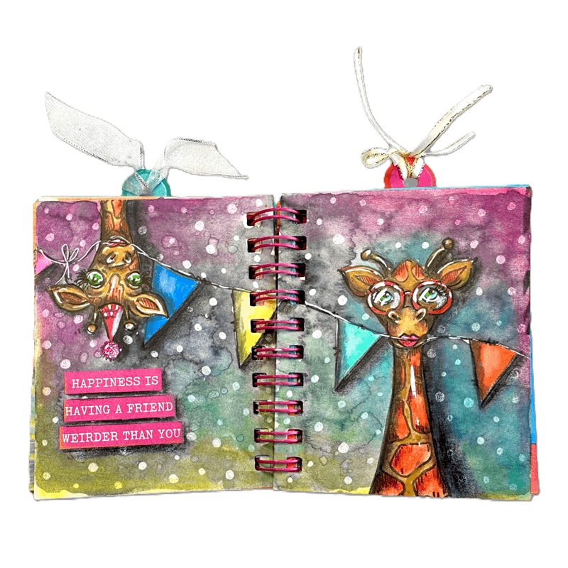 Gelová razítka v sadě s motivy žiraf navrhla umělkyně  Art by Marlene , jejíž tvorba je svérázná a vesele barevná. Vyrobená jsou z kvalitního silikonu. Největší výhodou je jejich průhlednost – přesně vidíte, kam tisknete. Používají se s  akrylovým blokem .