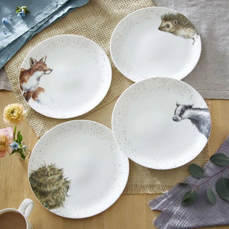 Talíře typu coupe jsou mělké, ploché a mají jen jemně zvednuté okraje. Minimalistický tvar podtrhuje řemeslné zpracování a tahy štětce v ilustraci, jíž je potištěn. Velký průměr (26,7 cm) se hodí k podávání hlavních chodů. Pro gastronomické fajnšmekry nabízíme i sladěné porcelánové talíře s lesními zvířaty menšího rozměru na předkrmy či dezerty, takže můžete servírovat celé menu se stylem.