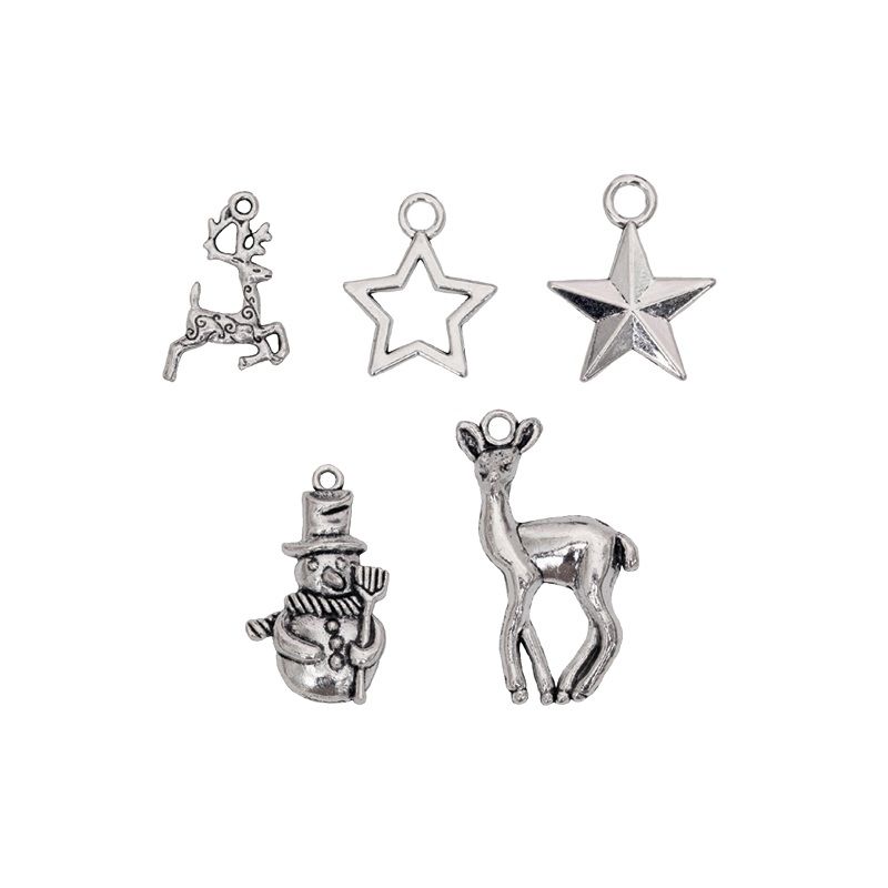 Kovové komponenty na kreativní projekty, scrapbooking, cardmaking, bižuterii apod. Rozměr balení 8,5 x 15 x 4 cm. Obsahuje 10 ks. Barva stříbrná, vánoční motivy. Celý popis