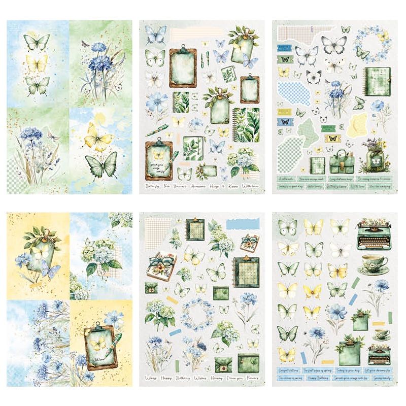 Designové papíry a obrázky v kreativním bloku jménem Spring Wings ("jarní křidélka") jsou perfektní na výrobu motýlích přání, visaček, dekorací a další jarní tvorbu. Papír má vysokou gramáž a neobsahuje kyseliny ani lignin způsobující žloutnutí a křehnutí – výrobky tak zůstanou krásné po dlouhou dobu.
