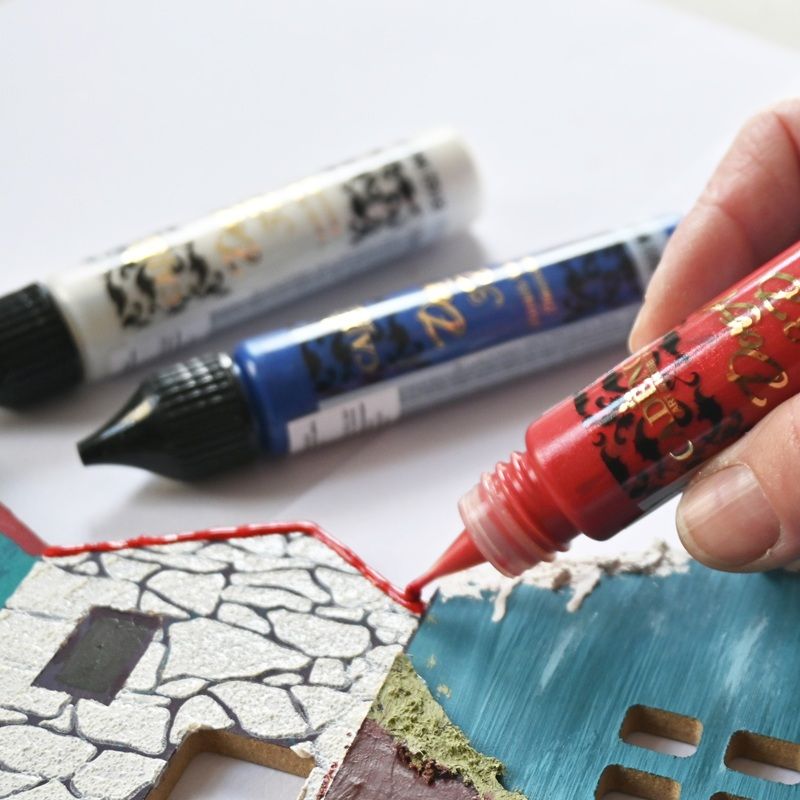 Rychleschnoucí metalická 3D barva balená v praktické konturovací lahvičce umožňuje dekorování rozmanitých povrchů: dřevo, stěny, malířské plátno, keramika, papír, textil, polystyren, kámen, beton, kov a podobně.