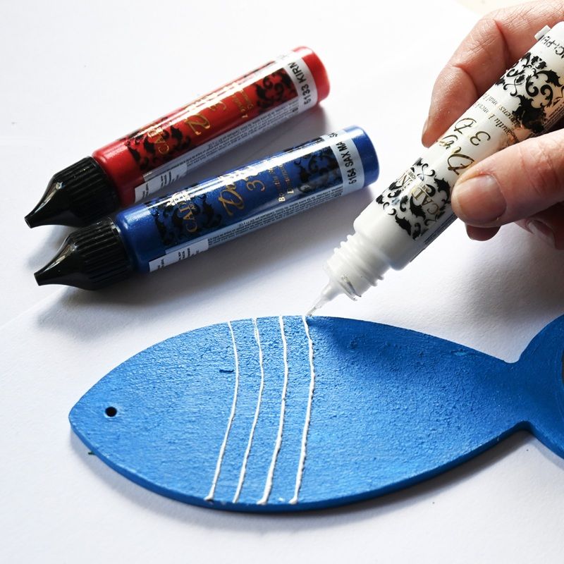 Kontury lze použít samostatně na vytváření nápisů, malých 3D dekorací, teček, kreseb atd. Dekorovat můžete třeba stěny v dětském pokojíčku, které sladíte v bytovými textíliemi. Dekorované textílie důkladně zažehlete. Tuto barvu můžete použít i na předměty malované akrylovou barvou a dodat jim tak efektní trojrozměrný vzhled.