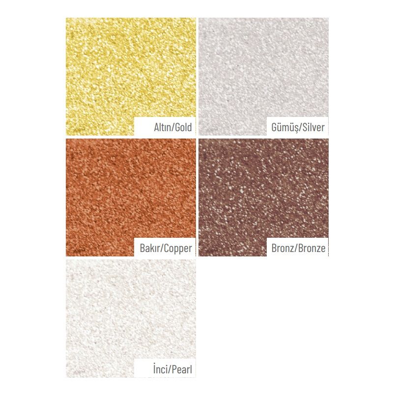 Mimořádně efektní metalická barva obsahuje velmi intenzivní koncentrací třpytek a je vhodná na většinu povrchů. Obzvlášť vhodná je primárně jako barva na textil ve spreji – díky výborným krycím vlastnostem vyniká nejlépe na černém textilu a džínovině.
