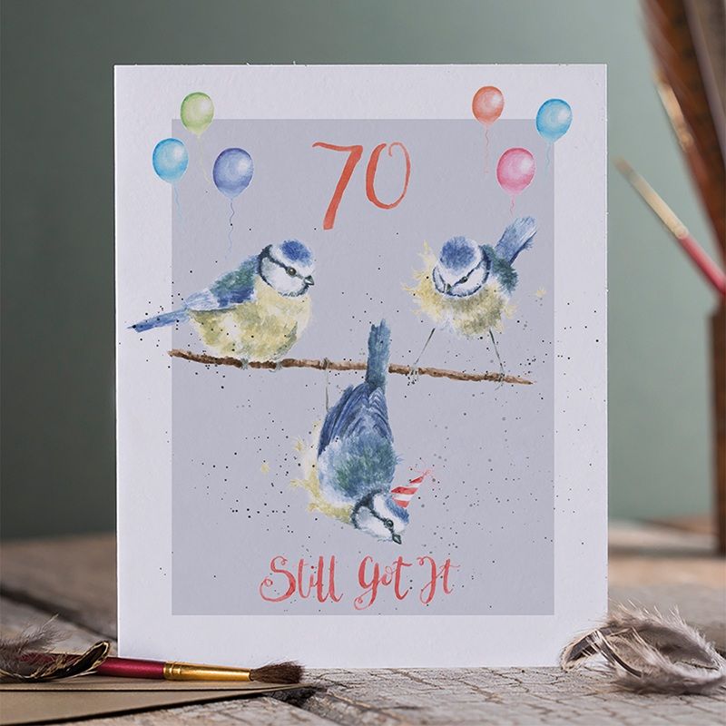 Sada přání a obálky od rodinné firmy Wrendale Designs s akvarelovou malbou sýkorek od britské výtvarnice Hanny Dale má na přední straně nápis „Still got it“ – pořád na to mám.
