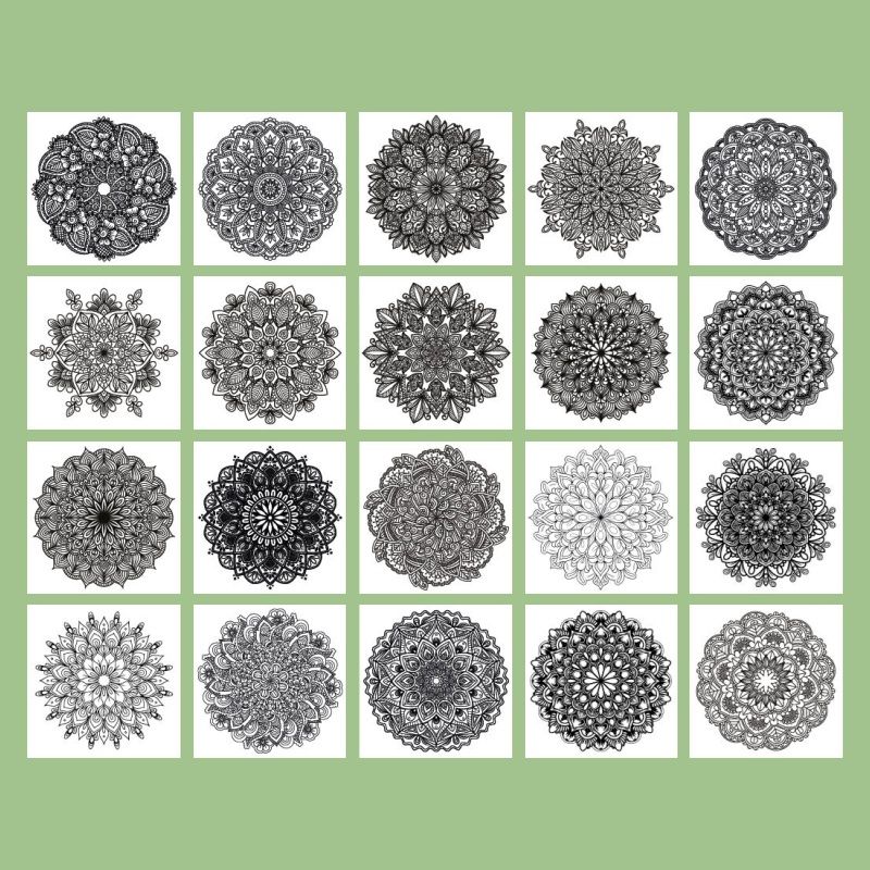 • Blok má 20 jednostranných listů, vybírat lze z 20 různých designů mandal.