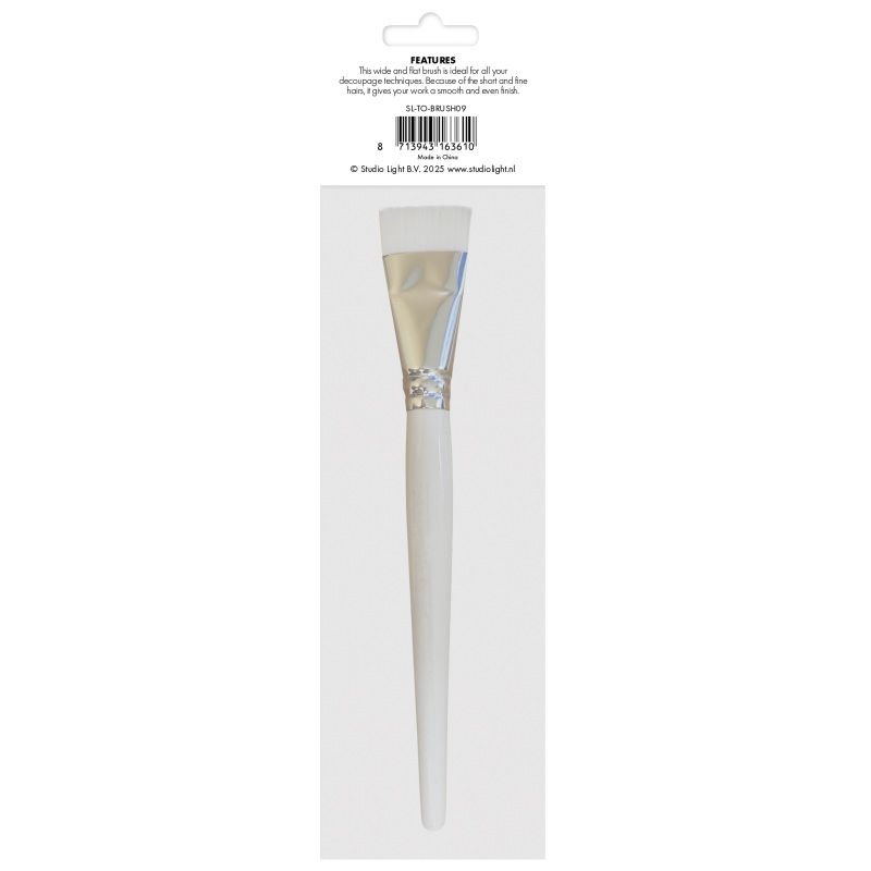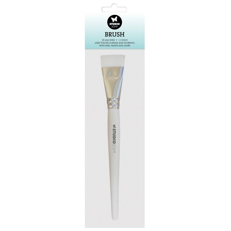 Široký umělecký štětec se syntetickým vlasem a krátkou rukojetí, ideální na malbu, lakování, decoupage a další techniky. Šíře štětin 33 mm.