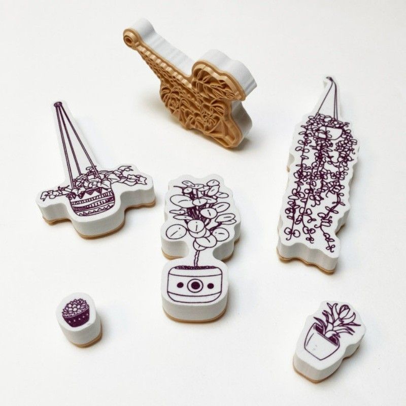 Sada originálních gumových razítek s motivy pokojových rostlin. Razítka skvěle využijete při výrobě záložek do knížek, dárkových obálek, pozvánek, přáníček nebo k dozdobení Bullet Journalů či scrapbookových alb.