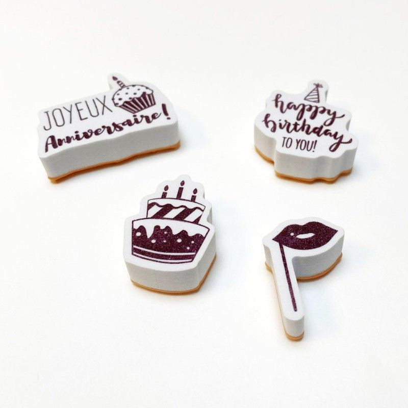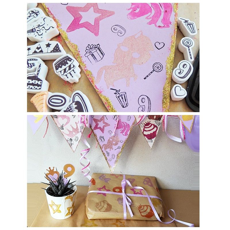 Originální sada gumových razítek pro vytvoření blahopřání k narozeninám, pozvánek a dekorací narozeninové oslavy či party, ale i pro dozdobeníí fotoalba apod.