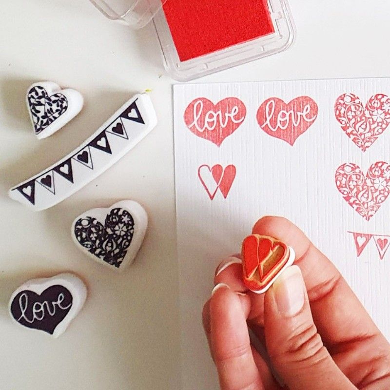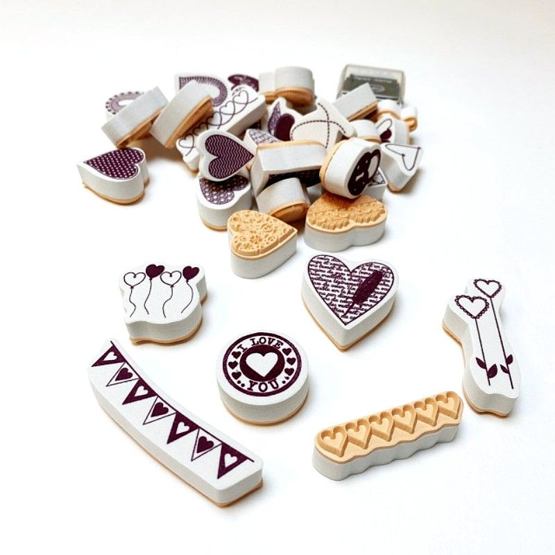 Kvalitní gumová razítka na pěnové hmotě s motivy srdíček - ideální na papír, textil i k otiskování do modelovacích hmot. Sada obsahuje 35 razítek a černý razítkovací polštářek. Velikost razítek cca 3,5 - 5 cm. Celý popis