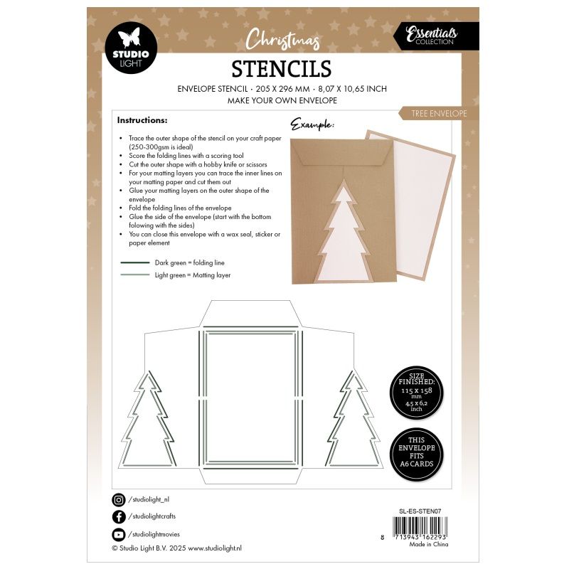 S touto šablonou si jednoduše poskládáte originální obálku s chlopní ve tvaru vánočního stromečku, akorát velkou na přání formátu A6 (10,5 x 14,8 cm). Je vyrobena z plastu a stačí podle ní obkreslit a narýhovat arch papíru, vystřihnout a slepit. Základ obálky lze pak dozdobit podle vlastní chuti. Šablona je pevná a odolná, dá se používat opakovaně, takže můžete obeslat všechny své známé vánočním přáním či PFkem.
