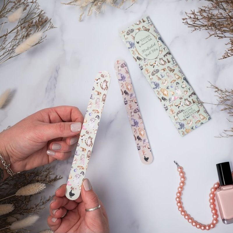 Sada ilustrovaných pilníků na nehty od britské značky Wrendale Designs je ideální na domácí manikúru i pedikúru. Rovný papírový pilník má kvalitní brusný papír, který je zároveň pevný i pružný a hodí se na úpravu přírodních i umělých nehtů. Využijete ho na tvarování pevných nehtů, ale je šetrný i k nehtům křehkým.