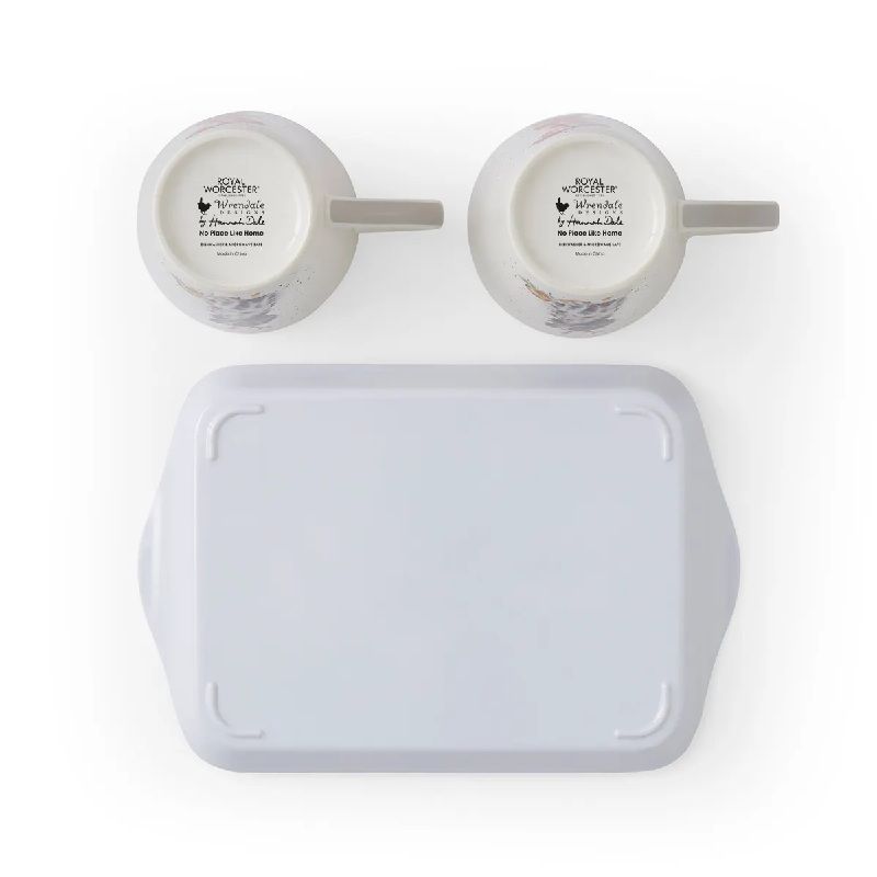 Tato roztomilá dárková sada obsahuje melaminový tác a dvojici porcelánových hrnků značky Pimpernel , které zaručeně zpestří vaše stolování. Melaminový podnos je ideálním pomocníkem na servírování horkých nápojů anebo oblíbeného dezertu. Hrnečky mají ideální velikost na kávu a velikostně se skvěle vejdou pod jakýkoli kávovar.