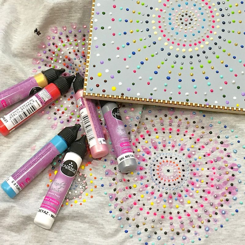 Vymačkněte tolik barvy, jak chcete mít perličku velkou. Doporučujeme aplikovat mírně od sebe, aby se perličky neslily dohromady. Tekuté perly jsou obzvlášť vhodné k malování na kamínky , dekorování mandal či velikonočních vajíček. Barvu můžete použít i na předměty malované akrylovou barvou a dodat jim tak efektní 3D vzhled.