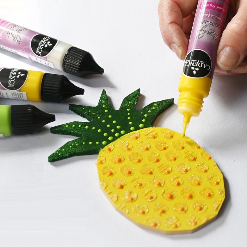 Dekorativní barva na vodní bázi, která vytváří trojrozměrné perličky. Tubičku s barvou stačí pouze zmáčknout a barva začne sama tvořit kuličku – perličku. Zpočátku špičatá kapka se za chvíli sama zakulatí. Praktická lahvička s tenkou špičkou umožňuje cílené a přesné dávkování barvy.