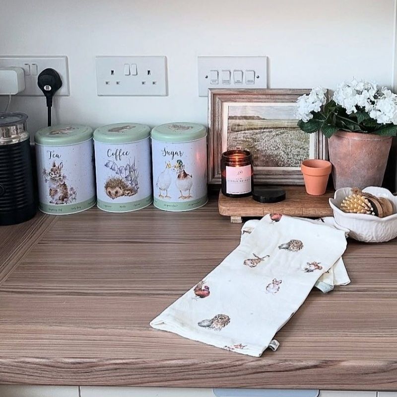 Bavlněná utěrka s lesními zvířátky bude svérázným doplňkem každé kuchyně! Provedena je v jemném, přírodním barevném tónu a potištěna je po celé ploše. Je vysoce savá, pevná a nepouští vlákna, je vhodná do pračky a lze ji žehlit. Hezkým detailem je barevně odlišené poutko na zavěšení.