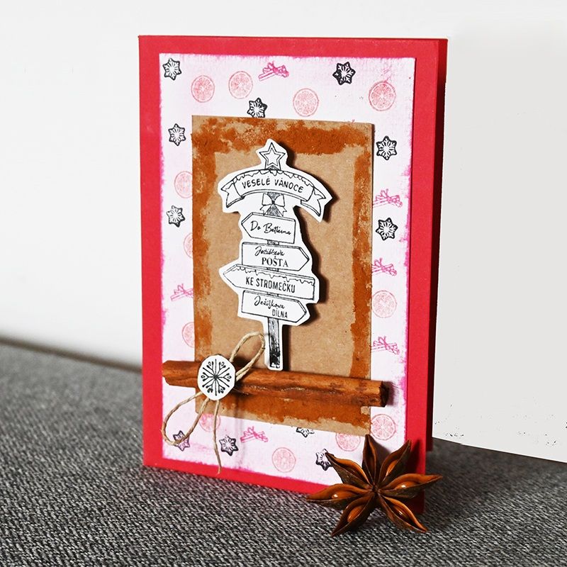 Vykouzlete originální vánoční přáníčka, drobné dárky, visačky, balící papír apod. pomocí sady razítek Stampo NOËL – Vůně Vánoc. Neodolatelná sada plná voňavých ingrediencí a i netradičního vánočního rozcestníku. Kudy vede cesta ke stromečku? Jdi za vůní skořice, perníčků a pomerančové kůry!