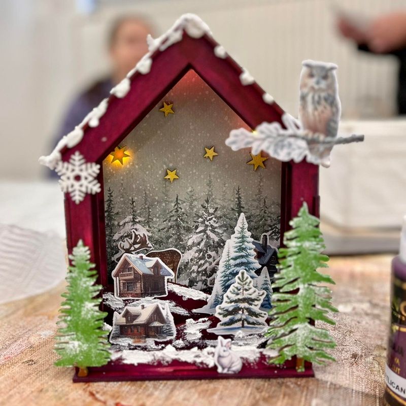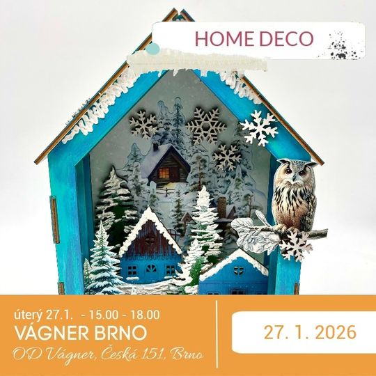 Z nenápadného dřevěného polotovaru může pod vašima rukama vzniknout zimní domeček s tichými zákoutími, lesními zvířátky i zasněženou krajinou. Provedeme vás tvorbou vlastní diorámy, kde se snoubí zimní barvy, třpyt sněhu a atmosféra tichých zimních dnů.