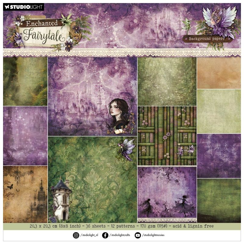 Kreativní sada papírů v bloku s romantickými fantasy motivy z kolekce Enchanted Fairytale („začarovaná pohádka“) se hodí na scrapbooking, cardmaking a další vyrábění. Podkladový kreativní papír skvěle poslouží jako základ projektu, na který lze vrstvit další prvky – třeba naše oblíbené papírové výseky.