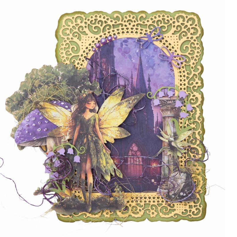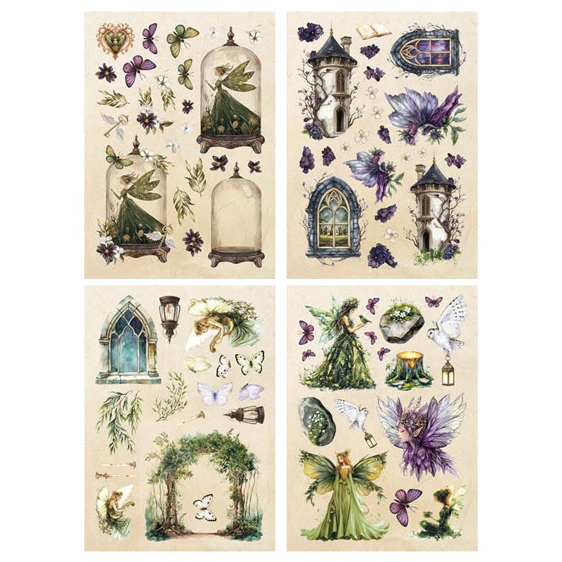 Vylupovací obrázky v bloku s romantickými fantasy motivy z kolekce Enchanted Fairytale („začarovaná pohádka“) se hodí na scrapbooking, cardmaking a další vyrábění. Jednotlivé motivy jsou předvyseknuté, obrázky stačí ze stránky vyloupnout k dalšímu tvoření – nemusí se vystřihovat. Nalepit je na svůj projekt můžete pomocí lepidla , lepicí pásky anebo lepicích 3D polštářků.