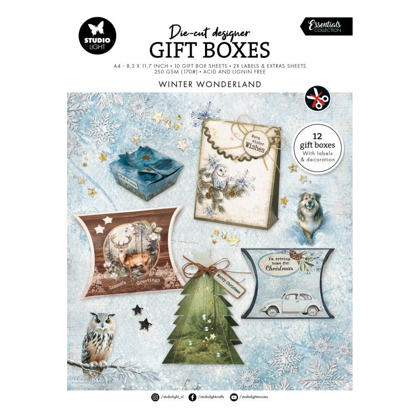 Pojďte si s námi hrát s tímto skvělým kreativním blokem, díky němuž si lze jednoduše vyrobit celkem 12 různých dárkových krabiček a taštiček! Najdete v něm 10 listů s pláštíky na samotné krabičky a 2 listy s extra ozdobnými prvky, jako jsou visačky, štítky s věnováním a dekorativní obrázky.