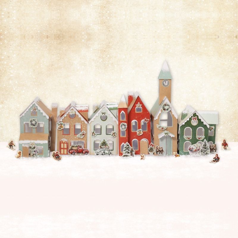Papírové domečky jsou jedno velké hraní! Máme pro vás blok s natištěnými domečky, kostelíkem, stromy, lampami a dalšími náležitostmi vesničky v klasických vánočních barvách. Jednotlivé motivy jsou předvyseknuté, obrázky stačí ze stránky pouze vyloupnout k dalšímu tvoření, není nutné je vystřihovat. Lehce tak ze stránky vyloupnete domeček se střechou, slepíte lepidlem a nakonec naaranžujete do vlastní mini ulice na libovolný povrch, vystavit je můžete na okenní parapet nebo poličku, nalepit na pevný karton apod.