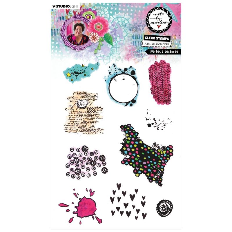 Gelová razítka v sadě s pozaďovými motivy navrhla umělkyně Art by Marlene , jejíž tvorba je svérázná a vesele barevná. Vyrobená jsou z kvalitního silikonu. Největší výhodou je jejich průhlednost – přesně vidíte, kam tisknete. Používají se s akrylovým blokem .