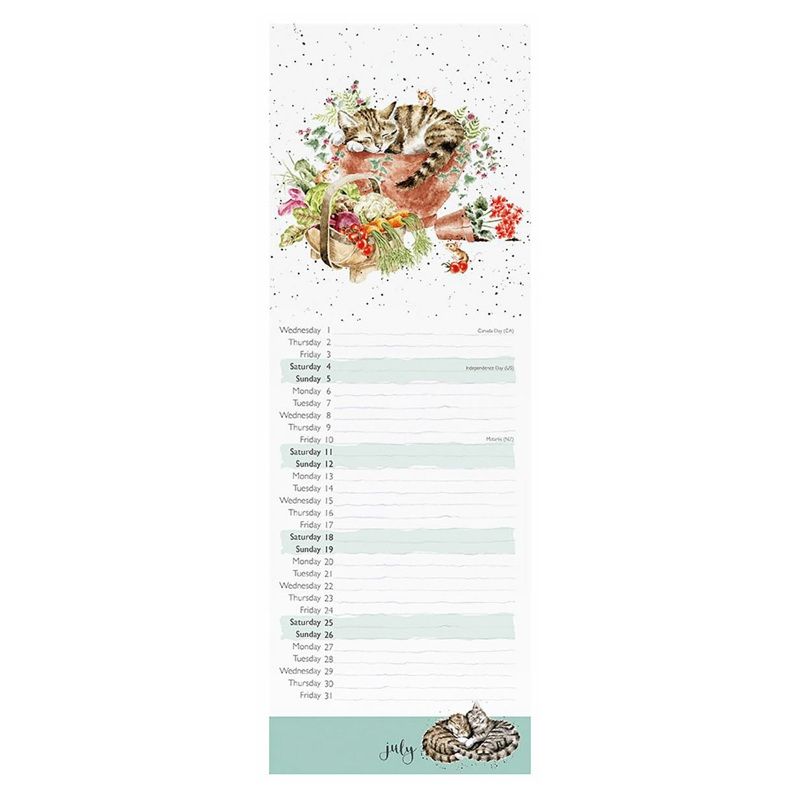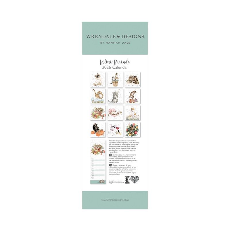 Měsíční kalendář na rok 2026 od britské značky Wrendale Designs v atraktivním slim formátu bude slušet nejenom stěnám v kuchyni! V tomto vertikálně orientovaném nástěnném kalendáři najdete akvarelové ilustrace různých kočiček – celý rok se můžete těšit na koťata, mourky, elegantní Ragdolly a další. U každého dne v měsíci je prostor na poznámky – denní aktivity, významné události a další plány. Zabalen je ve veliké dárkové obálce, je tedy připraven k darování. Kalendář je klasickým dárkem pod stromeček.