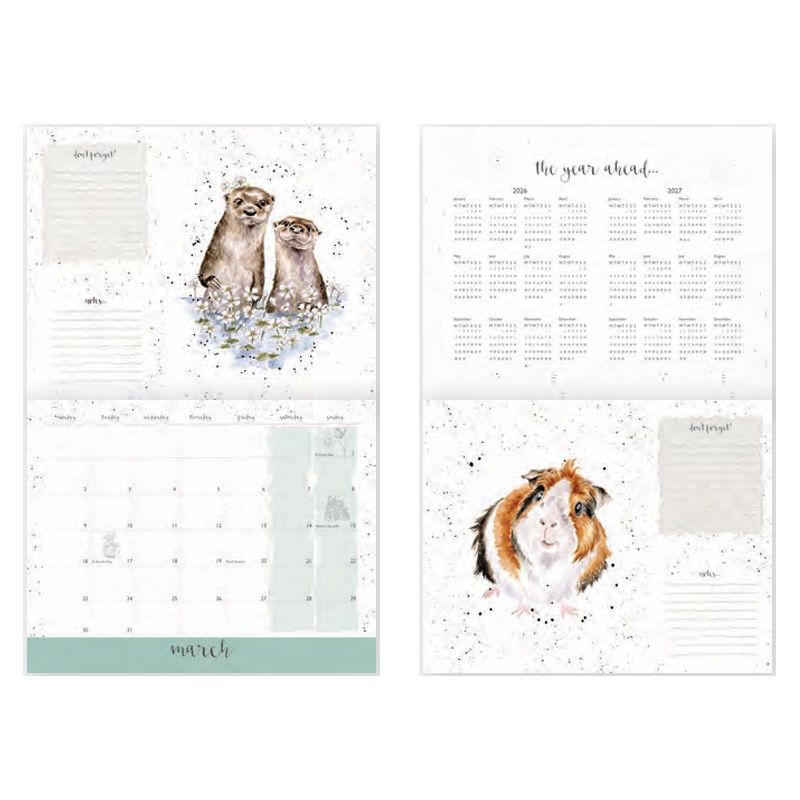 Měsíční kalendář na rok 2026 od britské značky Wrendale Designs je horizontálně orientovaný a nabízí dostatek prostoru k zapisování poznámek. Na každém listu je unikátní akvarelová ilustrace zvířat – celý rok se tak můžete těšit na obrázky mazlíčků, polních zvířat i lesních obyvatel. Bude praktickým dárkem pod stromeček.