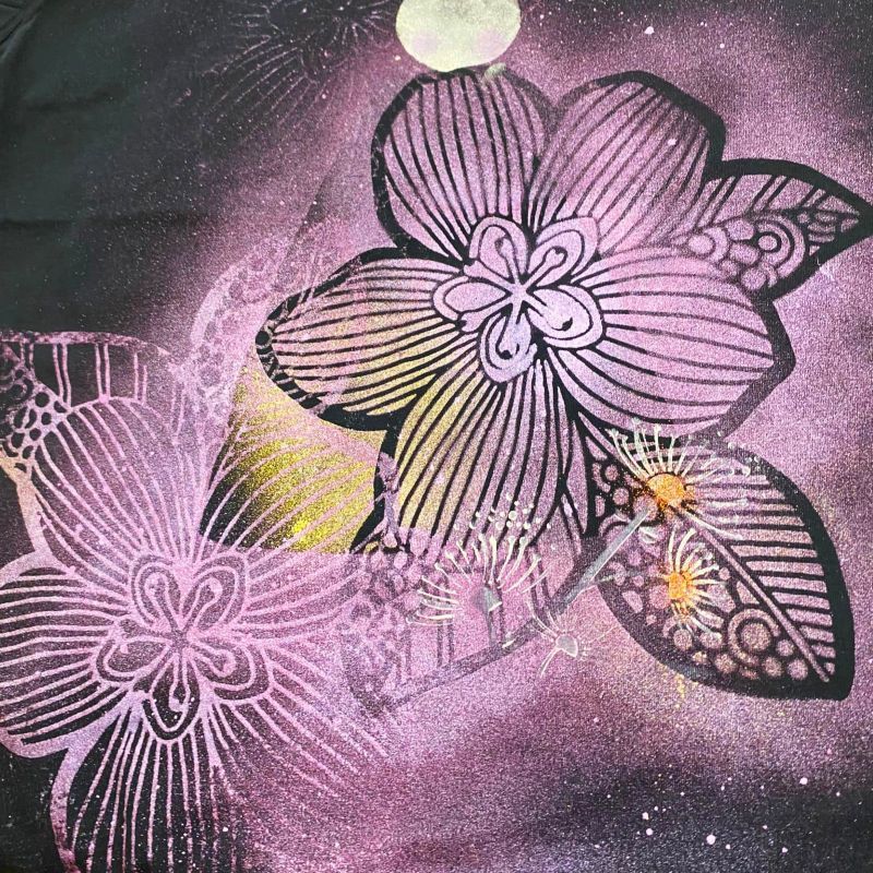 Plastová šablona s květinovým motivem. Opačný efekt oproti klasickým šablonám – barva okopíruje vzor kolem dokola, motiv zůstává v barvě podkladu. Lze používat opakovaně se spreji, barvami, inkousty i pastami na papír, dřevo, textil a další povrchy. Celý popis