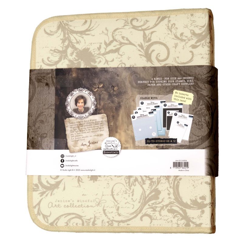 Má elegantní vintage ornament na tvrdých deskách, které zaručeně ochrání všechny vaše poklady. Uvnitř kapsy na zip je klasický pořadač na 4 kroužky umožňující vložit jakékoli kapsy a eurofolie (nejsou součástí balení).